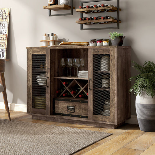 Farmhouse 47-inch 7-shelf Buffet with Wine Bottle Storage