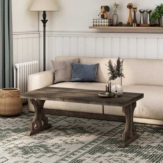 Farmhouse Brown 47-inch Trestle Base Coffee Table
