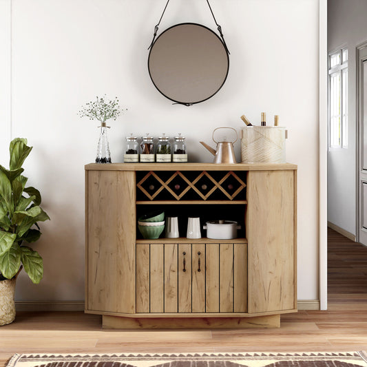Farmhouse Brown 47-inch Buffet with 4-bottle Lattice Wine Storage