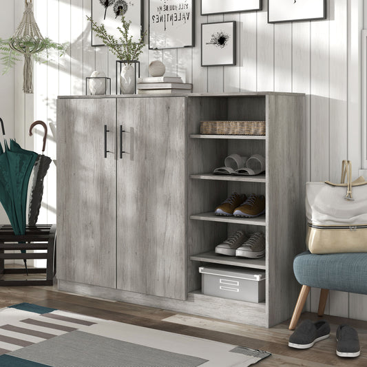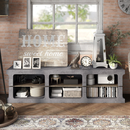 Farmhouse Gray 71-inch 6-shelf TV Stand with Cable Organization