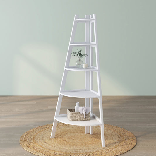 Space Saving Tiered 5-shelf Corner Bookshelf