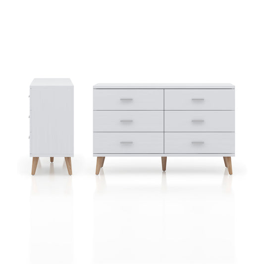 Scandinavian White 6-drawer Dresser with Bar Pulls