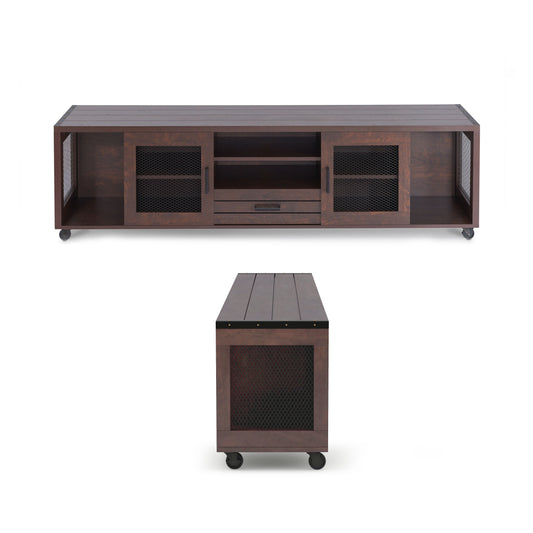 Industrial Vintage Walnut 71" Wide Mobile TV Stand