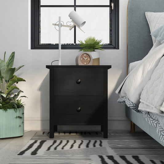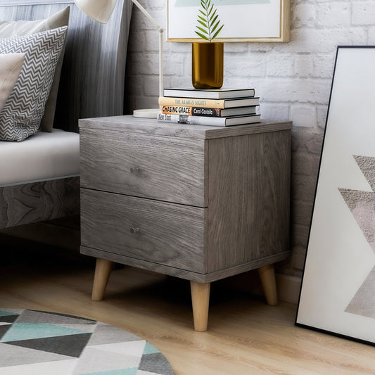 Mid-century Gray 2-drawer Nightstand with Knobs